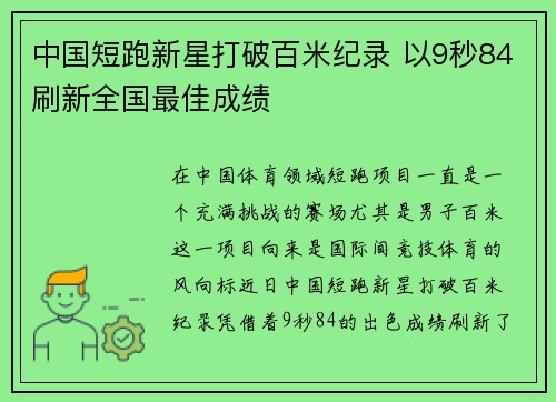 文章摘要的内容江苏体彩官网1、速度突破的挑战田径运动员如何在历史性的挑战中突破速度的极限?这不仅仅是个体能力的体现,更是科技与训练的完美结合。从技术手段到生理极限,探索这一无与伦比的成就。田径界的速度记录不断被刷新,每一次突破都是运动史上的里程碑。挑战极限,不仅仅是个人荣誉,更是整个人类对速度可能性的重新定义。科技...