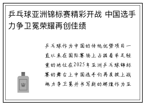 马龙强势回归,战胜对手力压群雄,夺得世乒赛男单冠军,这一壮举不仅再一次证明了他在乒坛的霸主地位,也让世界乒坛为之震撼。在经历了一段时间的伤病困扰和竞技状态的起伏后,马龙以坚韧的毅力和无与伦比的技艺重回巅峰,征服了一个又一个强敌。无论是技术的细腻、心理的成熟,还是战术的灵活多变,马龙都展示了世界顶级运动员的风范。本文将从四个方面进行详细阐述:一是马龙如何克服伤病,强势回归;二是他在比赛中的技战术创新...